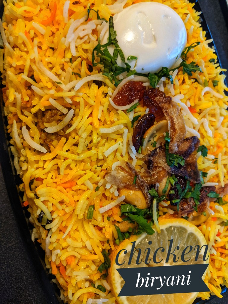 1. Chicken Biryani (~$15): A mixed rice dish with Indian spices, chicken buried inside the rice, lemon, and an egg on top. This is the best biryani I have had in Gainesville! This dish also comes with a variety of sauces- the white sauce is good if you like it creamy!