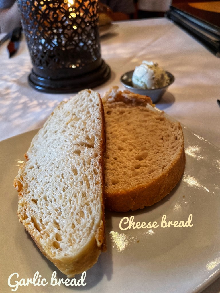 You are first given some bread before the meal and there were three bread choices: three cheese, garlic, and sea salt. I chose the three cheese and garlic, and the garlic was definitely my favorite. The bread, cooked in house, has a soft inside with a slight crust. The herb butter really complimented the bread as well.