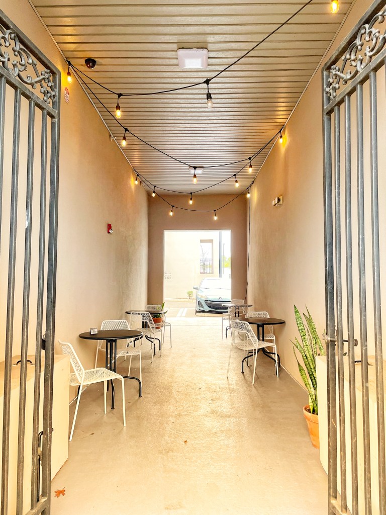 I liked the lights and set up in the hallway next to the shop. Just be aware that you may be approached by people in need of money if you are sitting outside. On this particular day, an un-masked man approached us and harassed my friend (repeatedly) to marry him after asking for money.